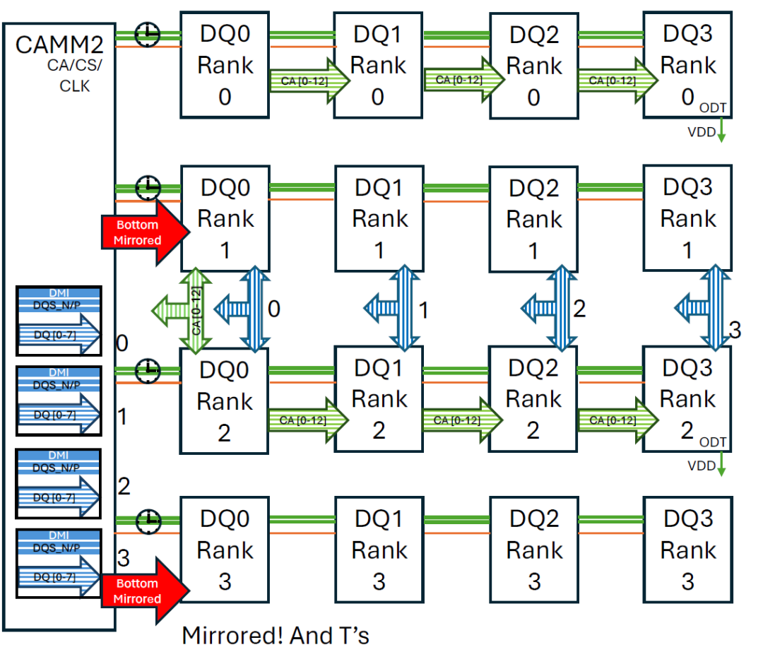 Rank 2 和 3 被镜像并共享 CA 和 DQ 线