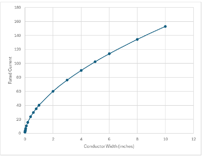 最大导体电流并不会随着导体宽度的增加而线性增加。