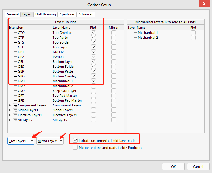 【Include unconnected mid-layer pads】:启用此选项以允许在 Gerber 的中间层中使用未连接的 Pad 焊盘。