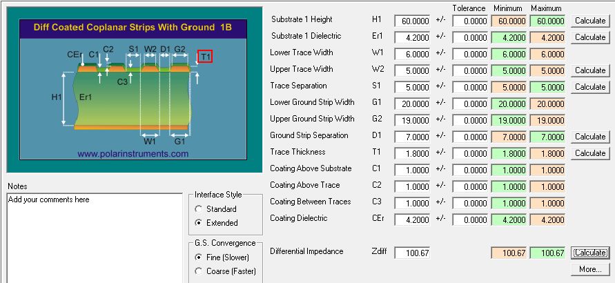 2.C1,C2,C3是绿油的厚度,一般绿油厚度在0.5mil~1mil左右,所以保持默认就好,其厚度对阻抗的影响不是很大;