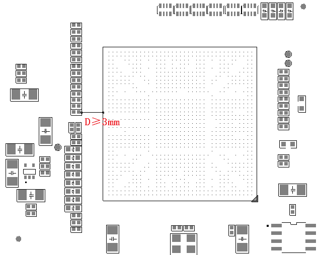 (1)BGA周边需留出返修区域,3mm内不要摆放元器件。