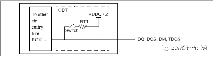 其实 ODT 技术的具体内部构造并不十分复杂。在内存各种引脚与内存模组的内部缓冲器中间设有一个 EMRS 扩展模式寄存器,通过其内部的一个控制引脚可以控制 ODT 的阻抗值,一旦 ODT 接到一个设置指令,它就会一直保持这个阻值状态。直到接到另一个设置指令才会转换到另一种阻值状态。