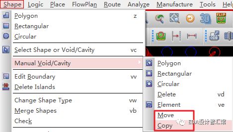 改板遗留下的洞洞或者避让形状,还可以进行移动,复制。如下图所示。