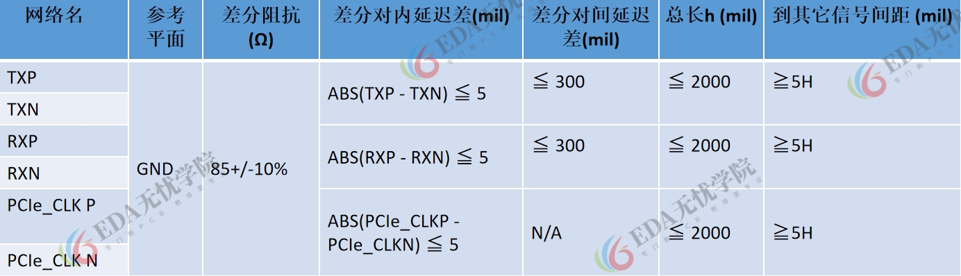 - TX和RX之间不要求做等长,但TX和RX各自对内需要做等长,对内误差为5mil。