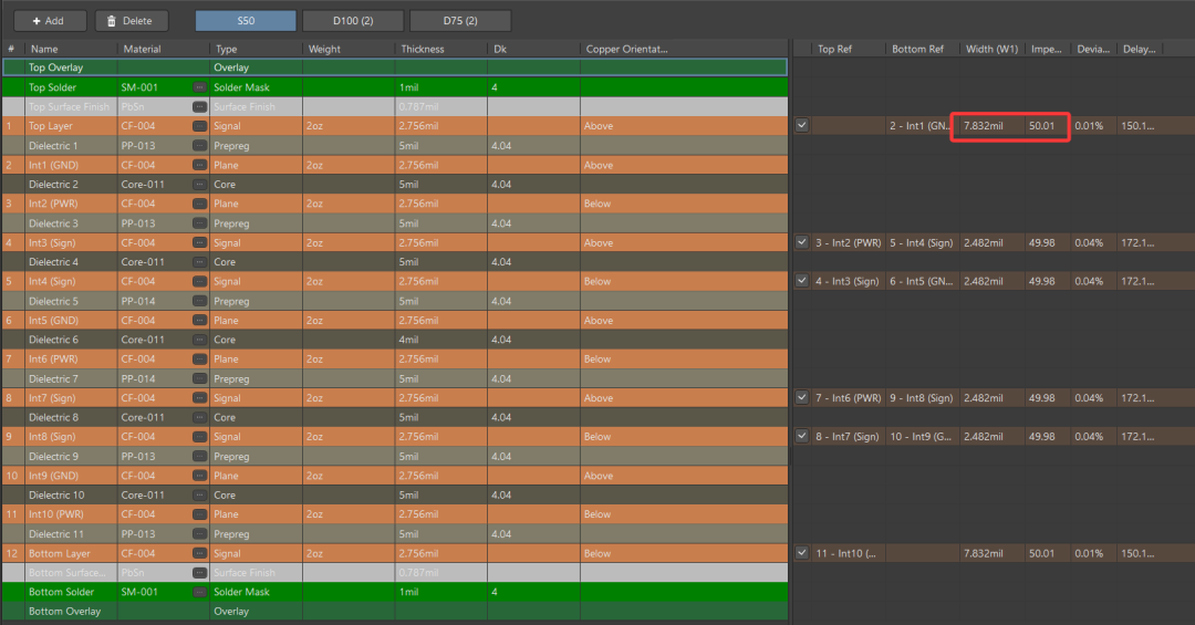 增加介质厚度是一个方案。但是,这会显著增加PCB的总厚度(例如从0.089"增加到0.110")。