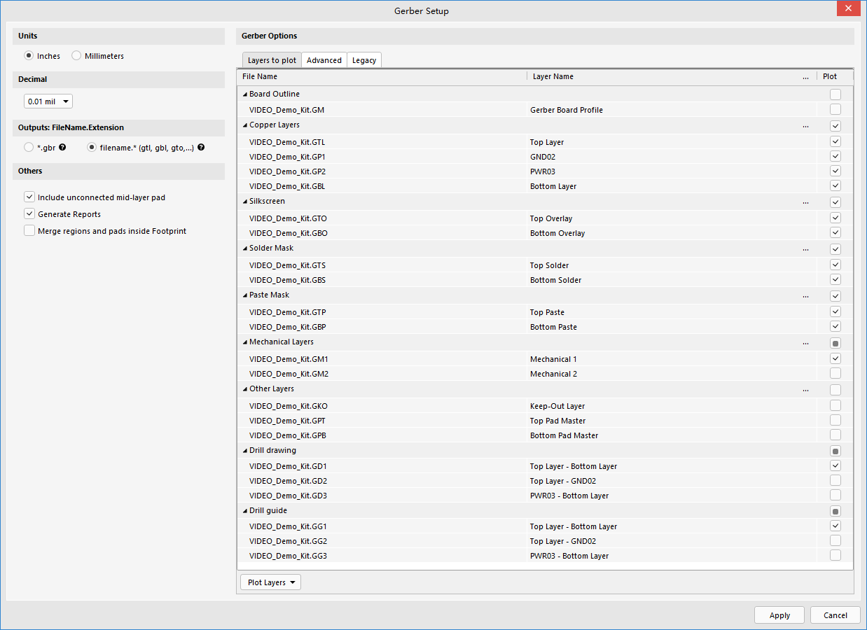 【filename.* (gtl, gbl, gto,...)】:启用此选项以生成具有相同文件名但具有不同扩展名的图层(.gtl、.gbl、.gto、...)。这里就是原来经典的生成Gerber文件的后缀格式。