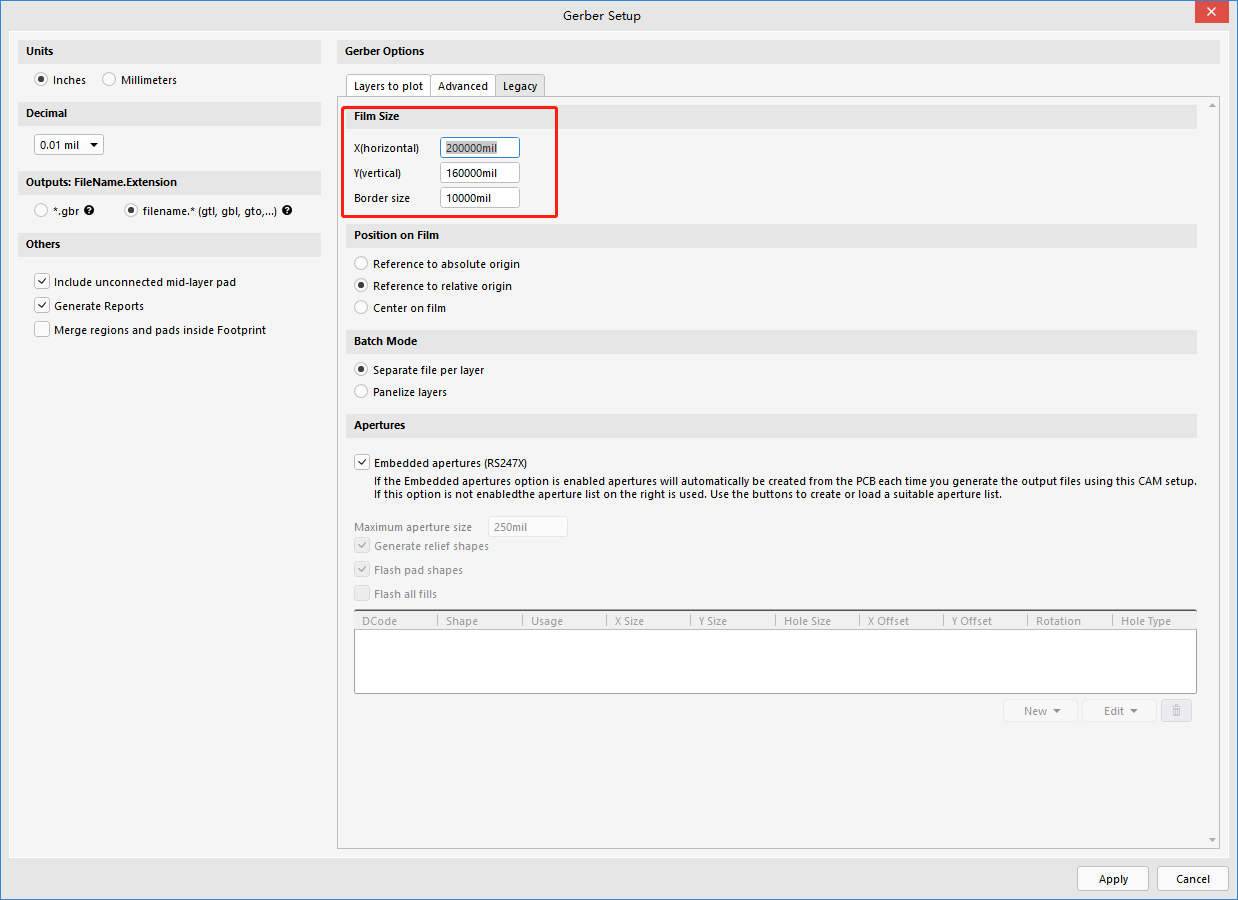 【Gerber Options】→【Advanced】:高级设置通常使用默认设置即可。