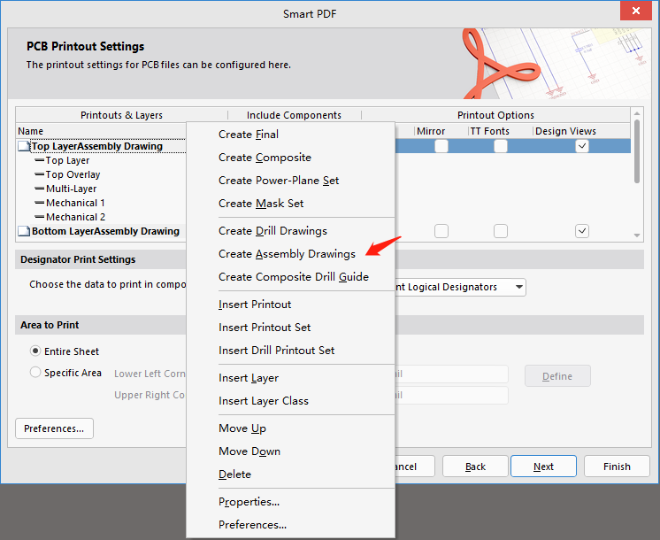 5、双击【Top Layer Assembly Drawing】输出栏,可以设置输出属性,装配元素一般输出机械层或板框层、丝印层及阻焊层,右键选择【Delete】、【Insert Layer】等按钮进行相关输出层的添加和删除操作,如图20所示。