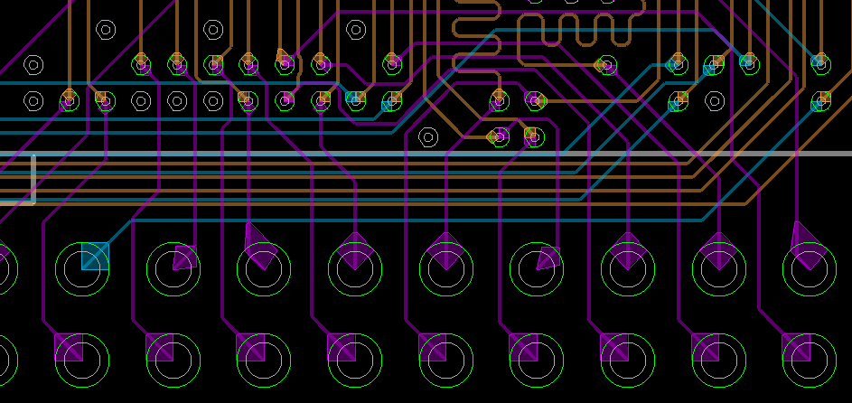 (4)Center lines between pads:如今的规则允许在相邻的焊盘或过孔有不止一根走线通道,所以为了提高制造的成品率,这个优化过程使走线尽可能从焊盘的中间穿过,离焊盘的距离足够远。